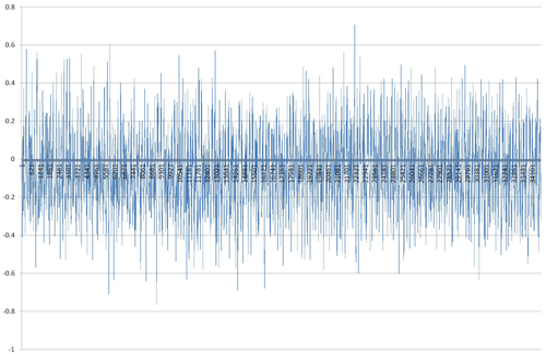 赤经轴1小时跟踪误差曲线(纵坐标单位为角秒)