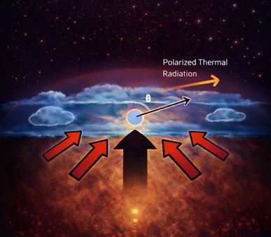 图1 示意了棕矮星大气中云层的分布,以及热辐射在云粒子散射作用下产生偏振信号的过程。偏振特性与云粒子大小、云层厚度和大气温度结构密切相关。研究结果表明,热辐射偏振光谱对云粒子尺寸具有高度敏感性。在特定粒子尺寸范围内,偏振度随波长变化会出现明显的峰值结构,而这些特征在传统的通量光谱中几乎不可见。与此同时,云层的光学厚度主要影响偏振信号的整体强度,而大气温度结构则决定了偏振光谱随波长变化的具体形态。特别是在水汽等分子吸收带附近,偏振光谱中会呈现出更加精细的结构信息,这些特征直接反映了不同高度处大气温度梯度的变化。
