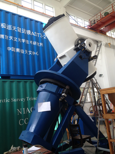南极巡天望远镜阵AST3由三架入瞳500毫米、主镜680毫米的望远镜构成,第一台AST3-1已于2011年顺利运抵南极昆仑站开始试运行,此次通过验收的是第二台AST3-2,目前已运往漠河进行越冬调试与试观测。