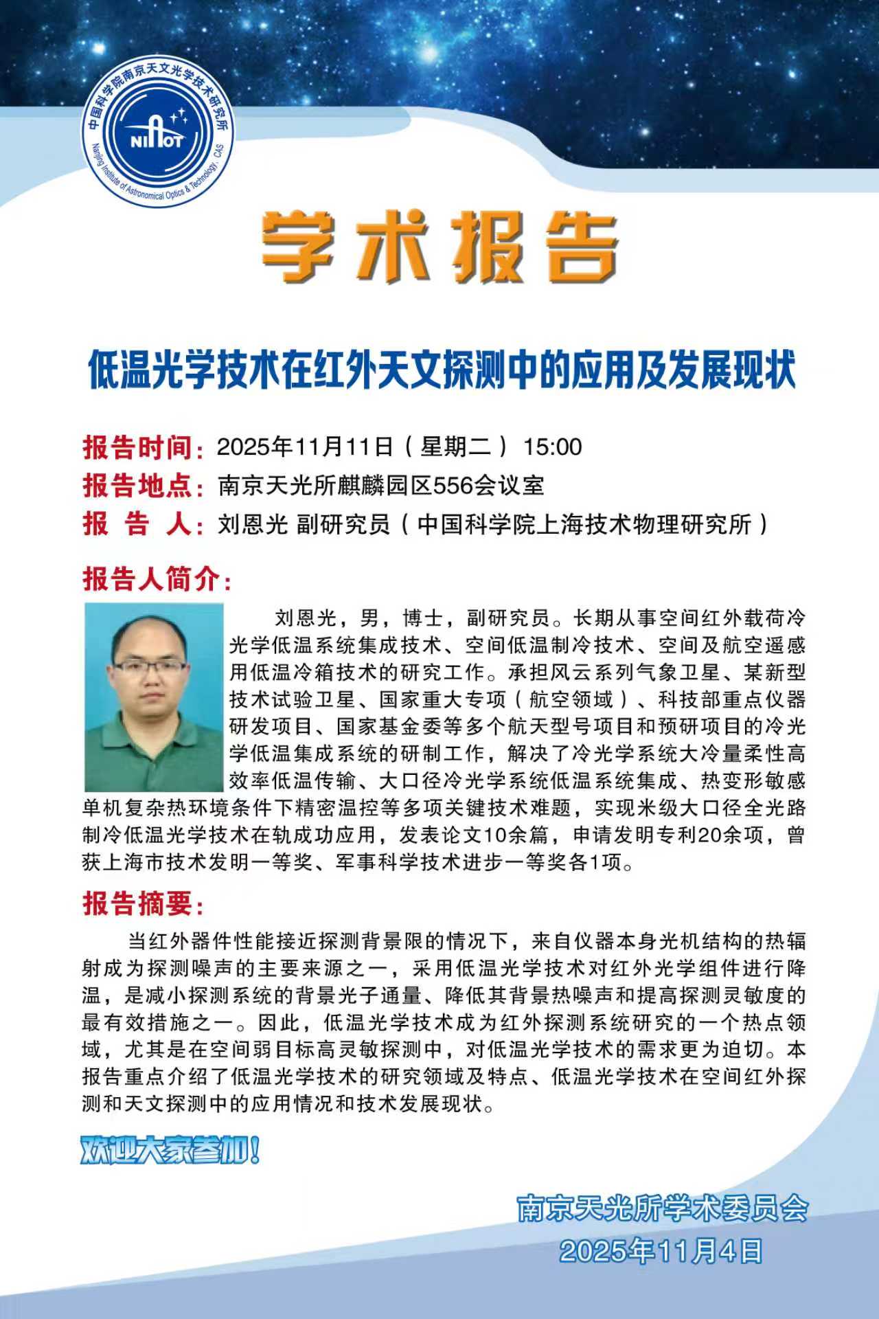 【11月11日】低温光学技术在红外天文探测中的应用及发展现状
