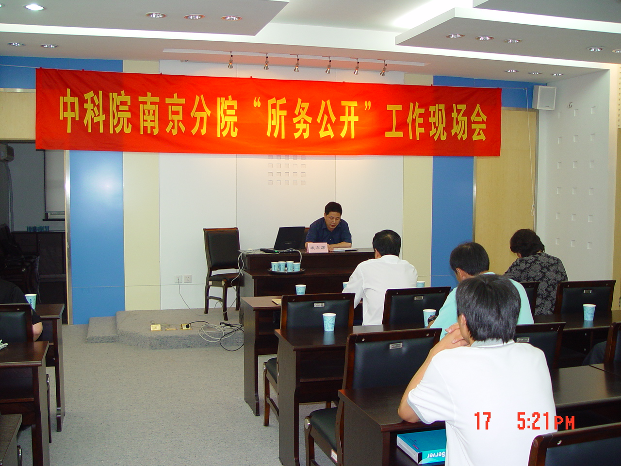 为推进宁区院属各单位所务公开工作的开展,8月17日,中科院南京分院“所务公开”工作现场会在南京天光所顺利召开,来自南京分院及宁区院属各单位的有关所领导,职能部门负责人和网管人员共20多人参加了现场会。