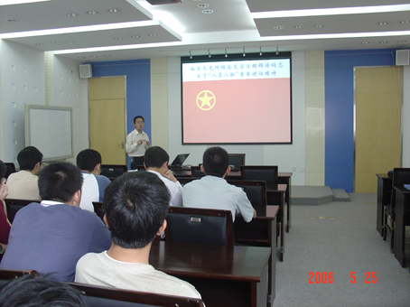 5月25日,积极响应党总支“学习胡锦涛同志关于‘八荣八耻’的重要讲话精神,树立社会主义荣辱观“的号召,南京天光所团总支开展了“八荣八耻”的学习活动,活动由团总支副书记董嘉丹主持。