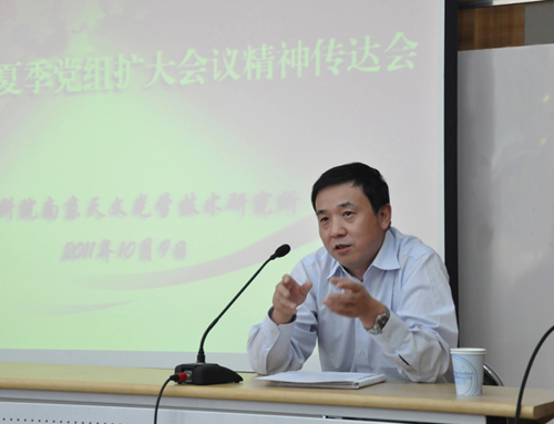 10月9日下午,南京天光所组织召开会议传达2011年院夏季党组扩大会议精神,南京天光所工程师及以上科技人员、全体党员与管理人员参加了会议。
